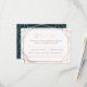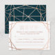 A modern and contemporary winter wedding response card, features a "faux foil" gold rose geometric pattern over a dark turquoise background. All your details are spelled in a beautiful modern typo.