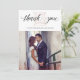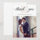 This elegant, stylish wedding thank you card features a faux rose gold look diamond over the words "thank you" in modern calligraphy. Add your favorite wedding photo to complete the look.