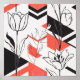 Striking modern floral seamless pattern poster blending bold geometric shapes with elegant line florals in black, white, and coral tones. Ideal for contemporary design lovers, minimalists, and creative professionals.