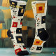 Elevate your wardrobe with these modern geometric floral socks. Featuring a sophisticated beige backdrop with bold red, black, and yellow accents and delicate floral details, these socks are a perfect blend of contemporary style and timeless charm. Add your name or text for a personalized gift that stands out. Designed for comfort and durability, these socks are ideal for anyone who loves unique and artistic accessories.