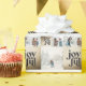 Modern geometric joyful typography multi photo christmas gift wrap. minimal monochrome black and gold effect graphic design. Part of a holiday collection.