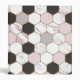 This pretty geometric pattern is made out of marble hexagons in rose pink, gold, black, and white. It adds a feminine, sophisticated touch to your home décor.