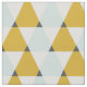 Trendy geometric pattern with mint blue, golden yellow and white triangles.