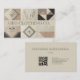 Minimalist geometric business cards in oatmeal taupe and soft black. Traditional modern simple elegant stylish white chic neutral earthy quilt patchwork collage handmade clothing leaf design.