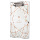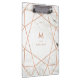 This elegant clipboard features a white marble look background with faux rose gold geometric lines. Personalize with your monogram and name.
