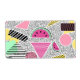 Modern geometric pattern Memphis patterns inspired, summer fruity watermelon slices geometric shapes, stripes, circles, triangles, squares, bright and colorful funky pattern perfect for the summer time wear, hot pink, blue, aqua green, bright yellow, white and black colors. Summer, sun, beach, feminine, girly, elegant, chic, trendy, simple, fashion, artistic, art, artwork, illustration, unique, vibrant, happy, young, popular, stylish, awesome, image.