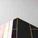 A geometric, modern artwork, elegant blush, pink shining faux glitter sparkles, blending with a simple, plain vanilla ice color, pale blush pink gradient, and geometric gold strokes, lines, stripes squares and triangles, with a black navy-blue marble stone image and on and white and pink triangle color block background. This Art deco inspired image print, with a girly feel, chic design, original art looks great for everyday wear, or decorations.