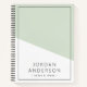 Modern notebook in white and sage green with your name and custom text. Sleek, minimal, geometric design.