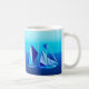 Mid-Century Modern mug - geometric digital painting of a sailboat / yacht in shades of ocean blue, from light aqua to deep cobalt