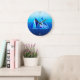 Mid-Century Modern clock - geometric digital painting of a sailboat / yacht in shades of ocean blue, from light aqua to deep cobalt