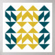 Mid Century Modern Geometric Art Design Poster in Mustard Yellow and Dark Teal Blue