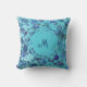 Modern geometric shapes with monogram in blue throw pillow