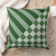 Modern Geometric Stripe & Checker Forest-Green Throw Pillow