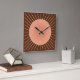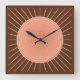 Modern Geometric Sunburst - Peach and Brown Square Wall Clock