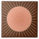 Mid-Century Modern abstract sunburst with a silky, gradient effect - peach / coral pink on a deep chocolate brown background
