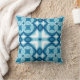 Throw pillow in a four-way, Mid-Century Modern, Geometric tile pattern in shades of light to dark denim blue and white