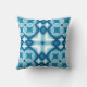 Modern Geometric Tile Pattern Denim Blue & White Throw Pillow