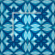 Fabric in a four-way, Mid-Century Modern, geometric tile pattern in shades of light to deep denim blue