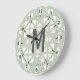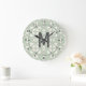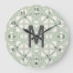 Modern geometric triangles in moss green wall clock with gray numerals and monogram letter.