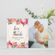 Modern Geometric Watercolor Peonies Wedding Photo Thank You Card