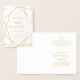This stylish wedding invitation features a modern, gold geometric design on a sharp white background.