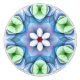 This pretty, modern geometric design features a white daisy within a lavender hexagon shape. Surrounding colors are shades of green and blue.
