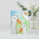 This postcard features a watercolor painting showcasing three white ducks against a blue-green background with geometric gold lines. See more modern animal gifts in our store, as well as more duck presents for animal lovers.