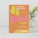 Joyful, fun, a little funky, and definitely a sophisticated statement, this modern geometric typography save the date card tells all your friends and family that you said "yes!" in distinctive style.