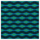 Modern abstract geometric zigzag pattern with diamond in aqua, navy blue and green natural linen fabric.