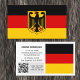 Business Cards: Modern German business card featuring flag of Germany on one side and your details together with scannable QR Code, small German flag on the other side. Easily customize link in QR Code for your website or mobile number, personalize name, address details or change flag on the side for your company logo, personal photo or any other image. Make it your business or just card for moving house.