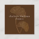Modern square business card features gold gingko leaf illustration on dark brown background with white contemporary text on front, and gray text with customizable QR code on back.
