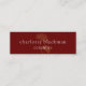 Modern skinny mini business card features gold gingko leaf illustration on dark red background with white contemporary text on front, and gray text with customizable QR code on back.