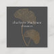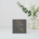 Modern square business card features gold gingko leaf illustration on dark gray background with white contemporary text on front, and gray text with customizable QR code on back.