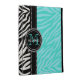 Modern Girly Black Aqua Zebra Print Personalized iPad Case