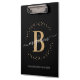 Girly, minimalist, simple, modern, black and gold monogram initial name script custom personalized monogrammed clipboard. Featuring a monogram initial and a girly name signature script in a hand-written calligraphy font with swash tails and dotted circle frame around your monogram. Perfect feminine gift for girls, mother, sister, birthday, office, business, or anyone who loves pretty stylish minimalist style.