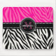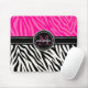 Modern Girly Black Pink Zebra Print Personalized Mouse Pad