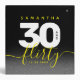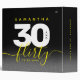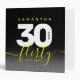 Celebrate the big three oh with this stylish modern design, which features striking black, white, and bright yellow block and handwritten lettering set on a rich black to smoky grey background. Reverse shows identical design.