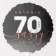 Celebrate the big seven oh with this stylish modern design, which features striking black, white, and copper block and handwritten lettering set on a rich black to smoky grey background.