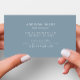 Make a stylish impression with this modern business card featuring elegant calligraphy on a dusty blue background. The minimalist design highlights your name in beautiful script, creating a sophisticated and professional look. Ideal for hair and makeup professionals, this chic business card exudes a sense of refined simplicity and elegance. Stand out with this contemporary and tasteful design that perfectly represents your brand.