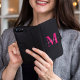 This case combines a refined black exterior with striking bold pink monogram initials, offering both style and functionality with its convenient wallet feature. Elevate your iPhone's protection and your personal style with this chic and versatile accessory.