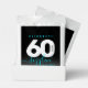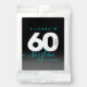 Celebrate the big six oh with this stylish modern design, which features striking black, white, and ice blue block and handwritten lettering set on a rich black to smoky grey background.