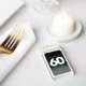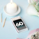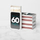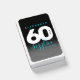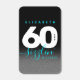 Celebrate the big six oh with this stylish modern design, which features striking black, white, and ice blue block and handwritten lettering set on a rich black to smoky grey background.