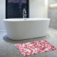 This bath mat features a vibrant geometric pattern in trendy magenta and pink shades, perfect for adding a splash of modern style to your bathroom. The colors are customizable to suit your unique taste.