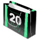 Celebrate the big two oh with this stylish modern design, which features striking black, white, and mint green block and handwritten lettering set on a rich black to smoky grey background. Reverse shows identical design.