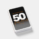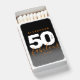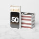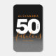 Celebrate the big five oh with this modern design, which features striking black, white, and orange block and handwritten lettering set on a rich black to smoky grey background.