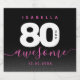 Celebrate the big eight oh with this stylish modern design, which features striking black, white, and pink lettering set on a rich black to smoky gray background.