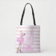 Modern Girly Pink Flamingo,Striped,Monogram Tote Bag