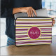 This modern girly laptop sleeve features a colorful striped pattern in white, yellow, pink, and purple with a custom name and monogram in matching colors.