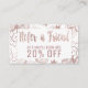 This modern and girly faux printed rose gold floral hand drawn illustrations print , refer a friend discount referral card is perfect for the trendy and stylish business owner. This fashionable and professional looking card is the perfect way to show your customers you care about their business. Customize this card for any business, just edit the text and add your own personal details.