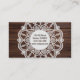 Modern Feminine Girly Rustic Woodgrain Lace Mandala Yoga business cards